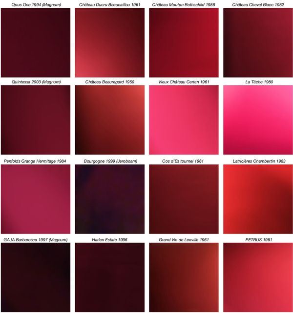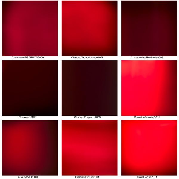 Regarding the photographing process, the wines were unopened and shot while illuminated with light shone through the bottles. First I photographed the necks (where there no wine) gauging the white balance and applying it to the photographs of the wine itself. By doing so I was perfect, it allowed me to observe the differences in hue and brightness from wine to wine.