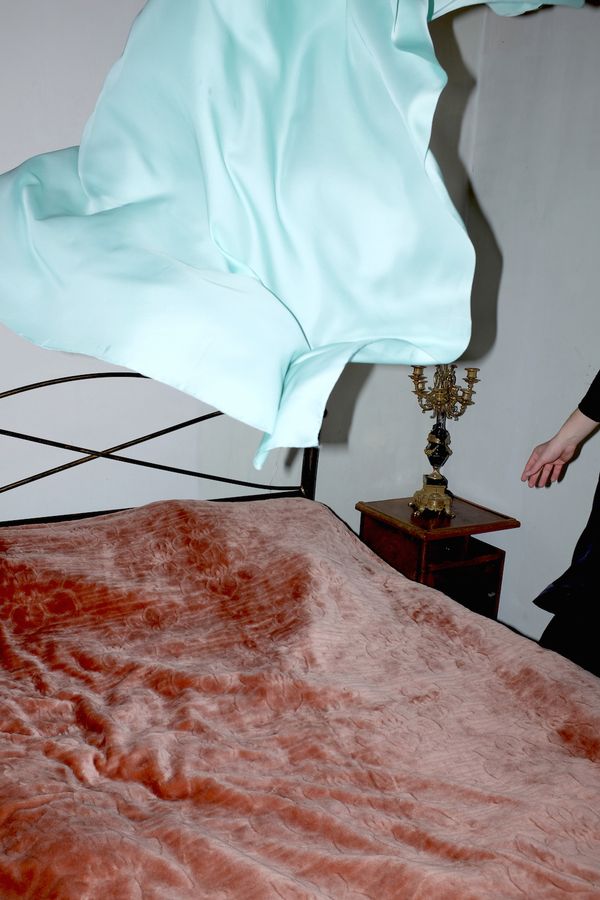 Here we stage a wedding, a marriage, the utmost human alliance in the eyes of God. The union of soulmates, leads to a spiritual connexion, and twins alike, not to the same person divided into two, but two distinct ones, doomed to be prisoners of a single mind. As if one had to give up on its very own identity in order to reach a sacred union, with its loved one, but mostly, through it, with God. Once simple rituals of communal life become rituals of faith and devotion, and we now belong to someone, to something, apparently greater than us alone. Our protagonists are now shapeless, passive forms fading without a blink, they never really see what is happening. They’ve become the shadows of forgotten ancestors. In this traditional setting, magic is invoked, almost to test the faith and resolve the inexplicable.