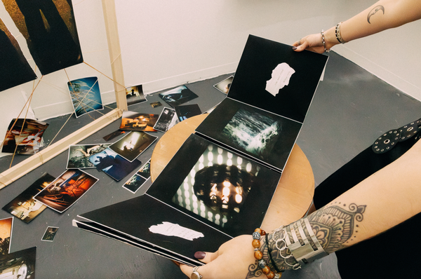 As the book expands — up to 15 feet when fully open — it becomes both object and installation, a physical embodiment of emotional complexity, where viewers are invited to walk around, witness, and find their own rhythm through the unfolding.