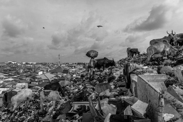 Kayayei live in Agbogbloshie, Accra’s largest slum and one of the world’s biggest e-waste dumping sites, where textile and plastic waste compound pollution. Burning e-waste releases toxic chemicals, contaminating air, soil, and water, and causing severe health conditions.