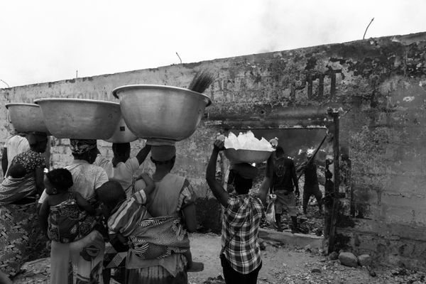 Many young women, known as kayayei, migrate to Accra due to climate change and economic hardship in northern Ghana, earning meager wages by carrying heavy bales of second-hand clothes. These loads, sometimes exceeding 55 kg, lead to severe spinal injuries, symbolizing their broader struggles with poverty, gender inequality, and urban hardship.