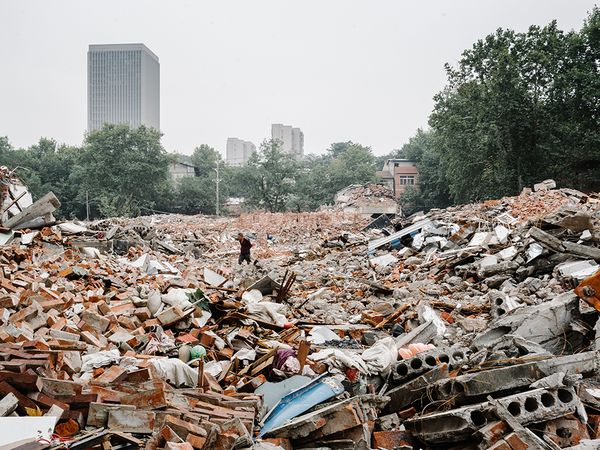 Zanoni does not only document what contemporary Chinese metropolises are made of today. He embraces the role of the urban flâneur by exploring the ways in which inhabitants can move or are prevented from moving across their environment. Zanoni climbs up the ground hills, cuts across rubbish mounds, wanders around forbidden construction areas, while gazing from above on the elevated railway. As an attempt to depict a city on the move populated with people on the move, these photographs reinforce the fact that paths are alternatively opened and obstructed.