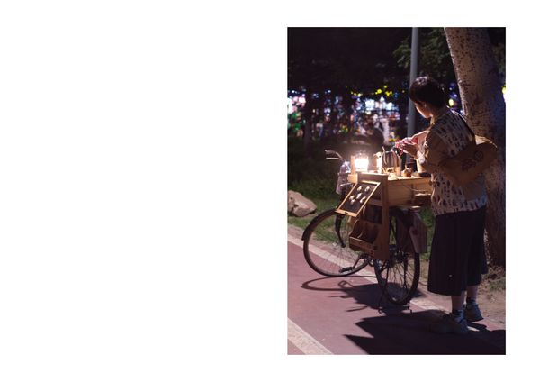 At dusk on the riverbank, Xiao Ma brews coffee from a bicycle turned café, choosing the fragile beauty of independence. This series traces the light of a woman who insists on living on her own terms.