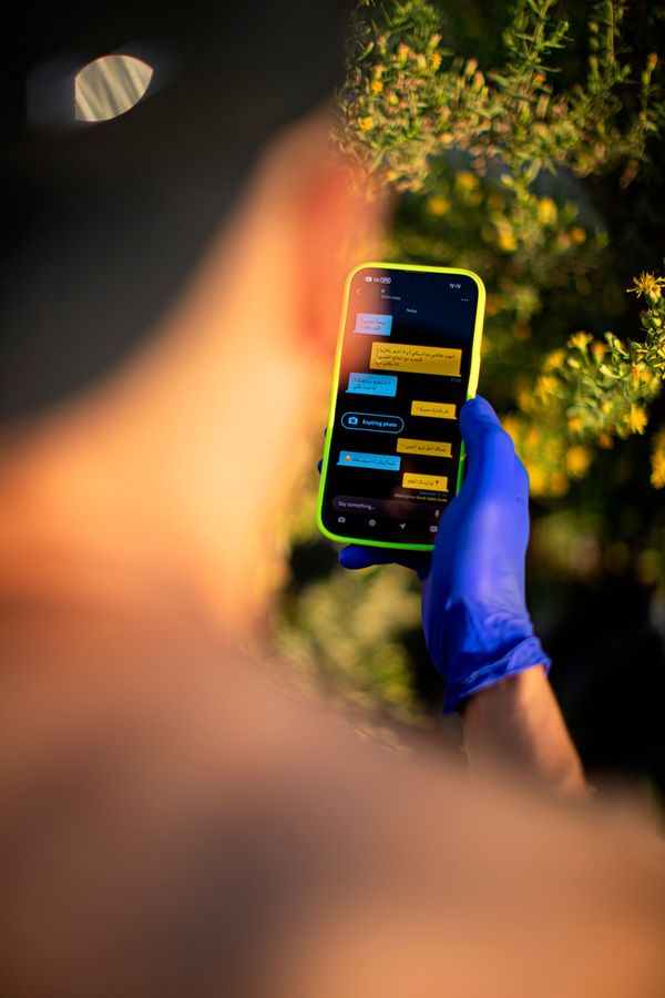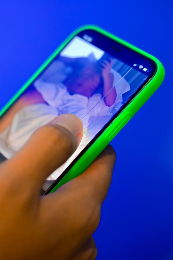 Human presence is mediated through screens and reflections, shaping contactless dating and transactions.