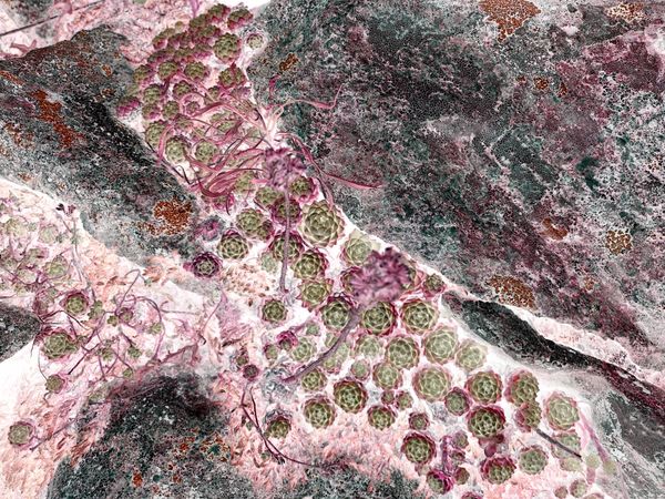 It looks like a vibrating river under the skin. It's firm, planted as immovable, visceral. A communion. A shared childhood landscape. The feeling of an unconditional complicity. Details. Intimacy. Micro universes. Delicacy. It freezes time and landscapes, and envelops them.