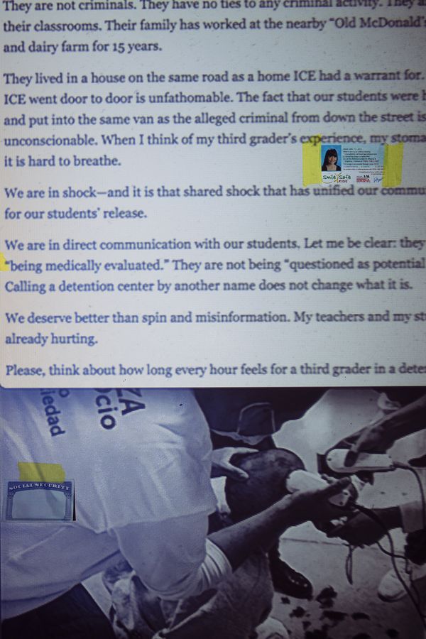 With the image "IDs," I knew it couldn't be printed in the book under the same conditions as the other images; there had to be an interactive element to the image—and the damning letter written by Sackets Harbor principal Jaime Cook—which recreated the privilege of engaging with such information voluntarily.