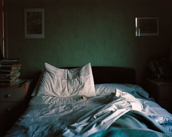 In each image presence and absence, past and present, often seem to converge. Objects and views hold memories: the stairs seen from my childhood bedroom at night; the image of a cluttered cabinet that echoes the day my brother died; the paintings of my mum and me found in the attic; and the green stones that I collected at the cemetery and held during my sister’s funeral.