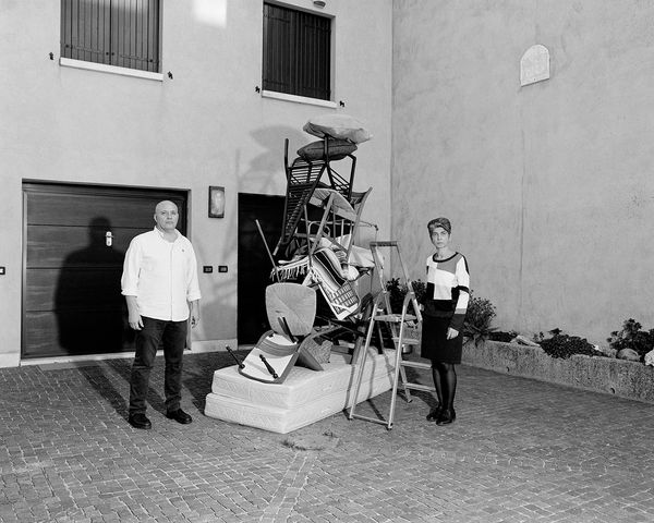 The domestic space is portrayed as an absurd and uncanny theatre defined by the creation of human and material-based structures, by members of Agostini’s family engaging with anti monumental activities, human-made installations and domestic objects, to conclude with the documentation of the borders of the home, repetitively photographed to underline the dimension that exists between inside and outside, between the private and public.