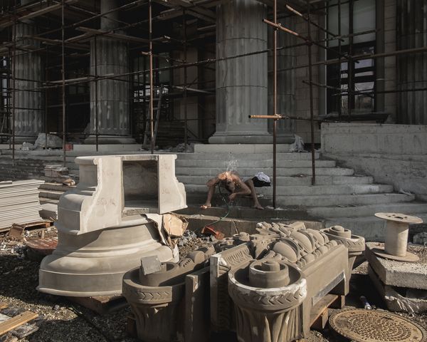 Although we know the tragic destiny of the hero and the futility of his actions, surrounded by the monumental decorations made of plaster, we keep waiting for the catharsis.