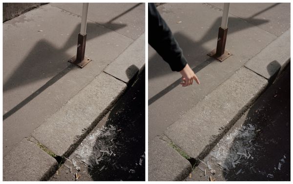 As her blindness approached, I took on the task of building an archive of her visual world. We began by photographing selected items of clothing - those whose mnemonic notes carry the strongest narrative charge. L also entrusted me with everything stored on her phone: 16,000 images and counting, which I have been organising into loose, evocative typologies. In 2025, she invited me to her neighbourhood in Paris where, following her instructions, I photographed the faces, places and details she will no longer be able to see. My images are quiet and contemplative - an exercise in sustained attention, as I give myself permission to look as if for the last time. A young man picks up a tiny pebble at the local park. A black cat leads me to her owner. Shards of glass catch the late-afternoon sun from a gutter on L's doorstep.