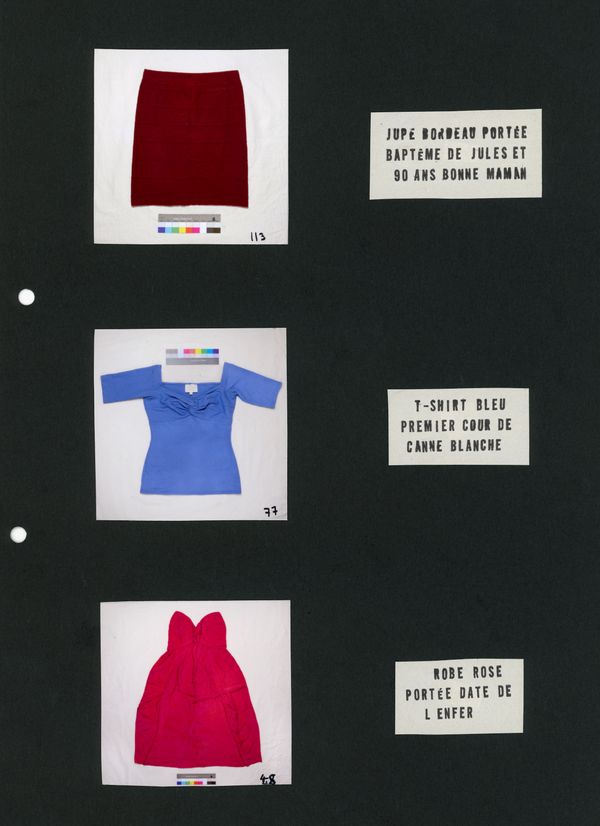 L has catalogued every item of clothing she owns. Each piece carries a precise Pantone code, a factual description and a personal mnemonic note - functional, vernacular texts that, read together, form an intimate poetic archive of a life. A coat becomes a colour swatch, a memory, a small act of resistance against forgetting. These self-generated documents - purposeful, tender, strange - are the foundation on which this project is built.