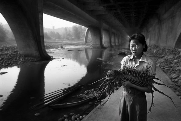 Broken Mirror is therefore the result of a compromise between me and AI, where the exceptional nature of North Korean society, strongly influenced by one of the toughest totalitarian regimes in the world, which effectively isolates the country and its inhabitants therefore it is difficult to know their fate, it is depicted through the insertion of alienating elements, in a sort of Kafkaesque metamophorsis.