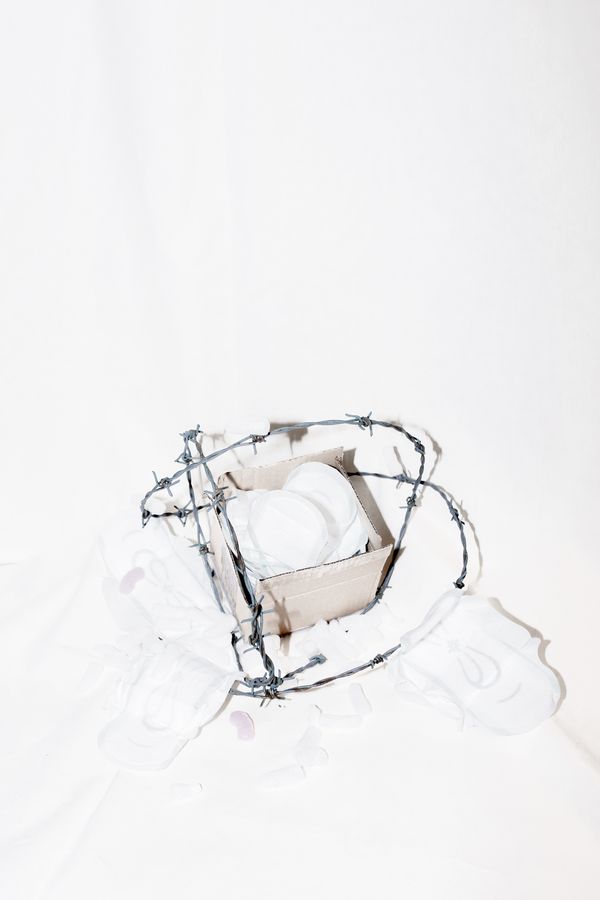 The second part of the project focuses on the conditions in which women political prisoners in Belarus live, as well as on their ingenuity and resilience. Deprived of basic self-care items, they invent ways to preserve dignity and selfhood: creating makeup brushes from their own hair, matches, and threads; ironing clothes with aluminum mugs heated by immersion boilers; using cigarette capsules as perfume; and moisturising their skin with masks made from prison bread. I recreated and documented these fragile objects as still lifes, drawing on letters and testimonies of former prisoners. I show the phenomenon of political repression through the woven carpets and also the acts of resistance and endurance through the photographs, revealing how even under systematic violence women preserve their dignity and individuality.