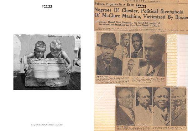 At the heart of the project is a visual glossary of white racial tropes, constructed using Maxon’s family archive and references from popular culture. This tool serves as an entry point for analyzing how whiteness is manufactured and reproduced over time. Featuring the work of artists from Chester, Pennsylvania—Desire Grover (artist), Wydeen Ringgold (citizen journalist), Leon Paterson (photographer), and Jonathan King (activist)—the book juxtaposes their work with mainstream media representations of the city, including Maxon’s photographic coverage from 2008 to 2016 and other contemporary and historical local media, to challenge the construction and embodiment of whiteness while encouraging reflection and conversation about its impact on society.