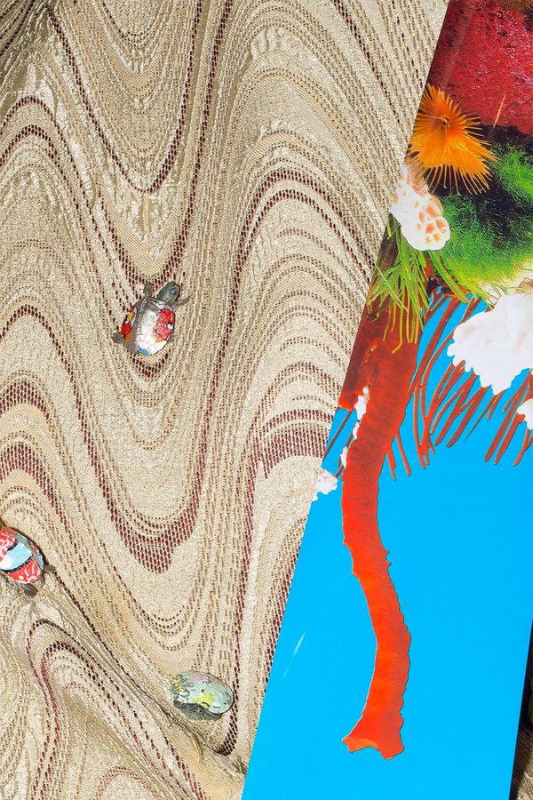 Makoto Oono uses a wide variety of elements including animals, plants, fruits, fish and insects to create still life landscapes reflecting on the disposability of things and objects used in our daily lives.