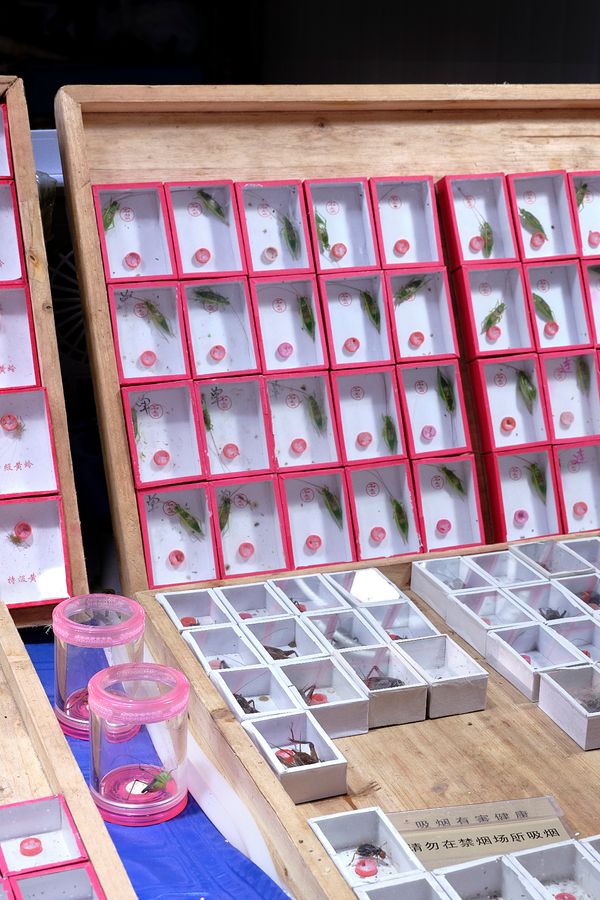 My last project, “Crickets”, deals with a thousand-year-old tradition that lives on in China: raising crickets to hear them “sing” or involve them in tiny fights. After a first discovery trip and months of research, I set off again in 2019 in the footsteps of this culture. There, I spent weeks browsing the largest insect market in all of China. I followed cricket hunters in the darkness of remote cornfields in Shandong Province and met mafia members buying millions of yuans’ worth of crickets for illegal fights. Immersing myself in this tradition, I learned the symbolism of flowers in traditional Chinese painting to compose my still life and I went for a walk in the streets of Shanghai – as amateurs traditionally do – with a singing cricket in my pocket.