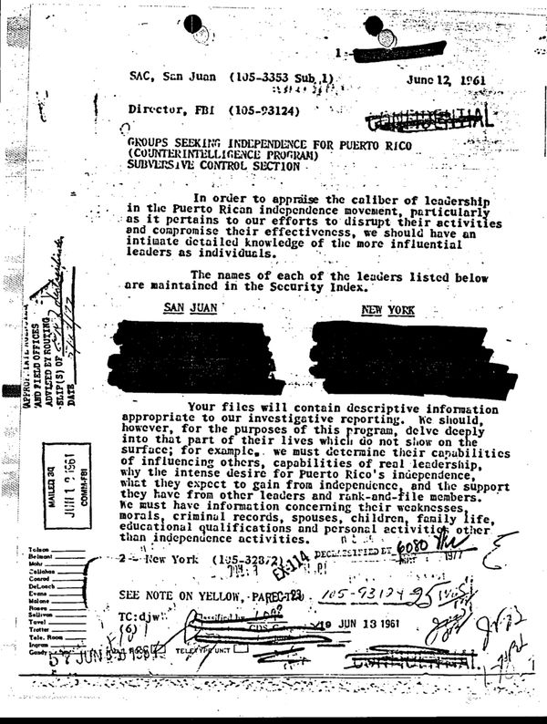 From the 1940’s until 1987 the Puerto Rican Police- in collaboration with the FBI and CIA- watched, intimidated, and murdered political activists on the island. The program is one of the longest continuous surveillance programs by the US government on its own citizens. It was carried out by a secret police division that compiled 15000 extensive dossiers and tracked over 150000 people, mostly activists advocating for independence from the United States.