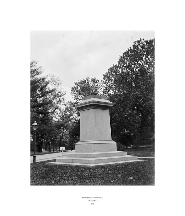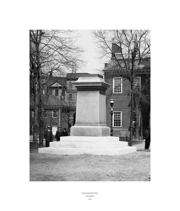 Like Rauschenberg, when adding a subtitle to the photographic image, Paulo Simão assumes that he erased to reveal, he took out to add and what has apparently been censored never ceased to be there. With his intervention Simão creates a kind of anti-evocative monument and, by isolating the plinth, he opens a new perspective and approach to the artistic work, moreover, emphasizes the importance and role that the artist, the artistic work and, in this particular project, the evocative public art piece assumes by validating certain values, knowledge, historical events or collective memories.