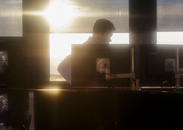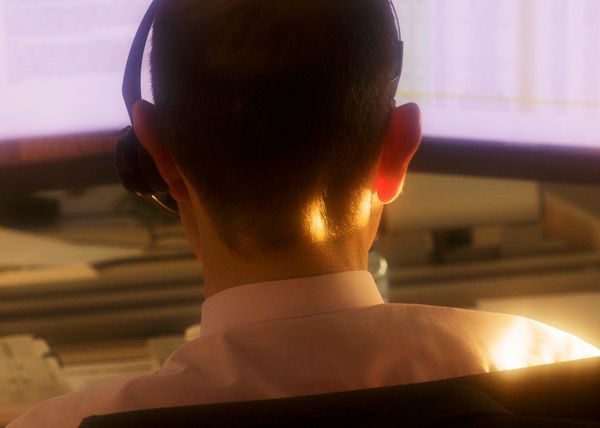 In this abstract and immaterial universe, my images interpret, through a narrative point of view, the melancholic, quasi-fictional daily life of European traders, buyers and sellers of anticipations, in a time of computerized and dehumanized trading.