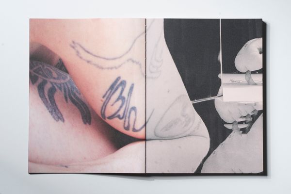 existential boner is a personal work about obsessions related to the body, identity and sexuality. it is presented as a book and an installation. mahalia taje giotto is and has always been a trans person, they chose to identify as non-binary and started their gender-affirming hormone therapy in November 2020. They monitored the changes they were undergoing, as a way of reappropriation of their own self. Doing so, photography was for taje the best way to record all of these steps, following the never ending rhythm of their compulsive thoughts. With a compilation of images and text using collages, vernacular photographies, studio shoots, iPhone snapshots, and scans, taje’s body of work evolved same time as their body to develop in a direction that is not only about identity but highlighting a feeling of urgency.