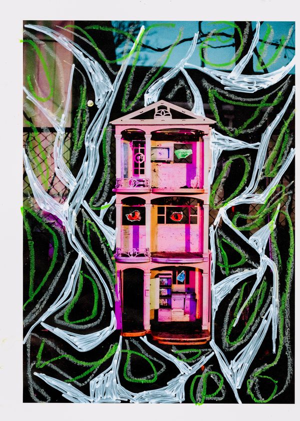 The photo essay shows the clink and flicker of this magical world on the constant tipping point. It shows a life design so different from everything they left behind. The photos seek the closeness of the wayward protagonists and is interested in the political in their everyday life. An everyday life full of intensity and chaos. In this edit the photos are combined with drawings and collages of the printed pictures by members of the community.