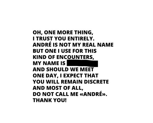 No other desire than to be in front of him, to be contemplated, exposing themselves before the camera and transgressing a norm their public life or private situation seem to impose on them. By posing nude and masked, revealing imperfect bodies at odds with the standards of erotic photography, these men had nothing else in mind but to abandon themselves to the gaze of the other, to submit themselves to it. The resulting photograph is for them but a document bearing witness to this, a «photograph as proof», an image of their momentary freedom.