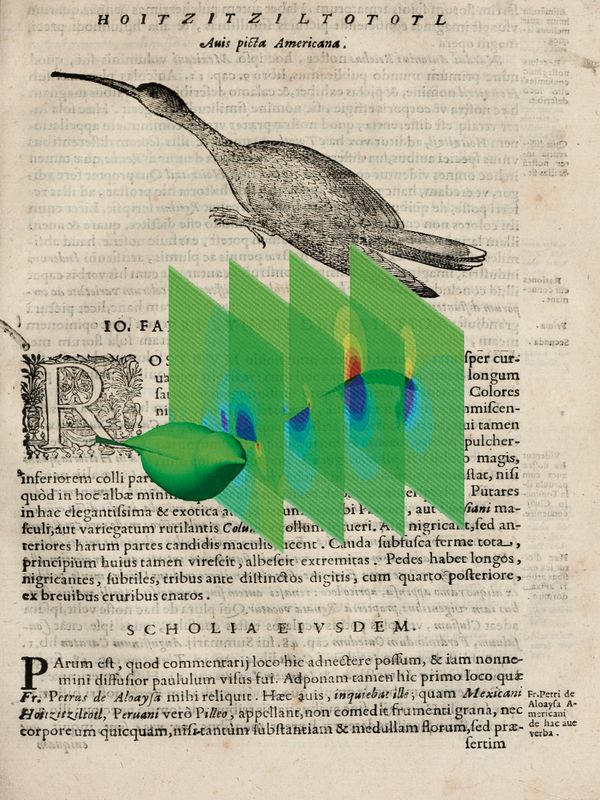 "Glimmers, feathers and staring skies" explores the hummingbird as a migratory body that transgresses dominant knowledge systems, moving between science and myth, between the earthly and the celestial. Engaging with personal archives alongside colonial and ornithological materials, the project interrogates how humans have tried, through images, to capture and classify a fleeting body.