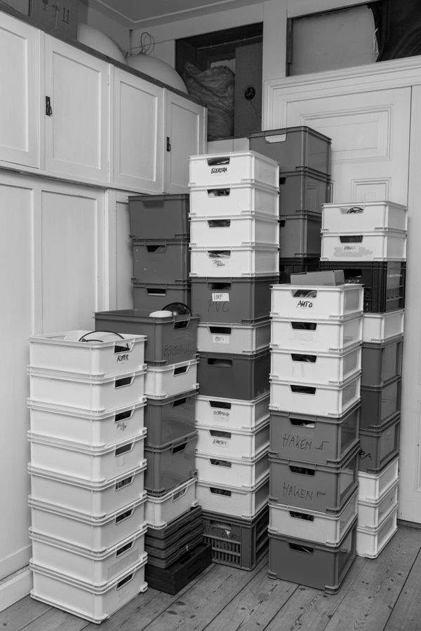 In addition to her own images Van Leunen complemented her series with an archive of photo's of household items she found on her father's computer, which is growing to this day. She re-organized some 3,300+ photos, made by her father with the aim of selling. You can browse through this archive online (https://marensvanleunen.com/works/helmersstraat/archief.html). A selection of these pictures is made into a poster, accompanying the black-and-white images in a self-published booklet also called Helmersstraat.