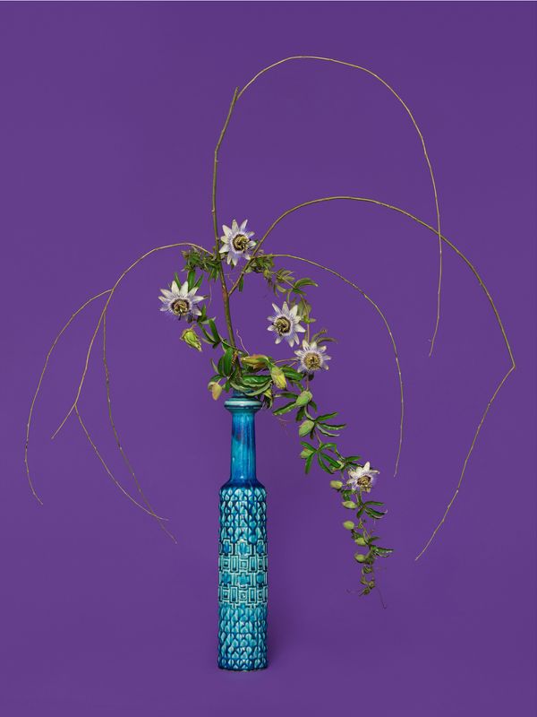 Ann Shelton’s 'jane says' is a photographic garden of flowers and herbs exquisitely arranged and offset against a brightly coloured background. The plants Shelton selected - rue, peony, pennyroyal, willow, poroporo, achillea - were drawn from millennia of human history where Shelton found reference to their use medicinally as emmenagogues (to bring on menstruation), abortifacients (to induce abortion), contraceptives, and plants related to reproductive health and birthing processes, all of varying strengths. Some are highly toxic and dangerous, while others are common herbs. Other plants in the series such as Valerian were included as they were a component in tonics and tinctures made for these purposes. Rich with oral and ancient histories Shelton’s intention is to remind us of the knowledge nature holds. Shelton's work argues that our mismanagement of nature engendered incremental loss of knowledge and understanding that we cannot easily build back, and that continues to pose a danger to human existence.