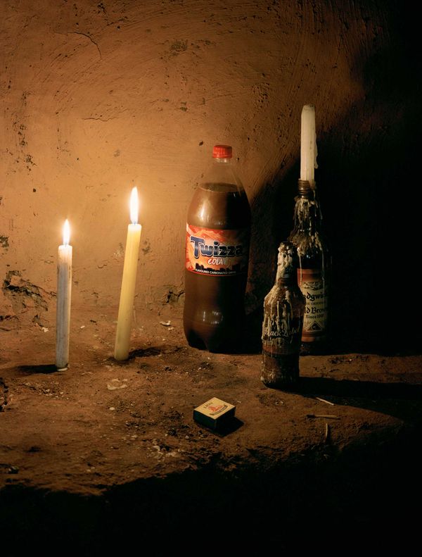 The dream world plays an essential role in the work of the sangomas. In their practice, the dream is a concrete remedy; it is considered a communication channel from the ancestors. It is up to the dreamer to interpret and pray for clearance of what the specific message is in a dream, and the messages can relate to everything from information about how a ritual should be performed to understandings of personal relationships. While working on Kelulé's dream It seemed clear that the medium of photography was an obvious form of expression to use: In many ways a series of photographs has the same structure as dreams - short flashes from a sequence or an event we no longer entirely remember.