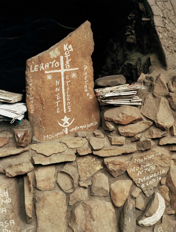 Kekulé's Dream is the result of a series of trips to the Free State province of South Africa. On the travels I have photographed a group of shamanic healers called sangomas and their sacred surroundings. The sangomas have a practice that concentrates on physical as well as mental health, and which in a particular way seems to unite the areas of body, dream, knowledge and imagination. Their work is characterized by a certain holism. Rather than wanting to divide and delineate, there is a vision of seeing things in a broader context.