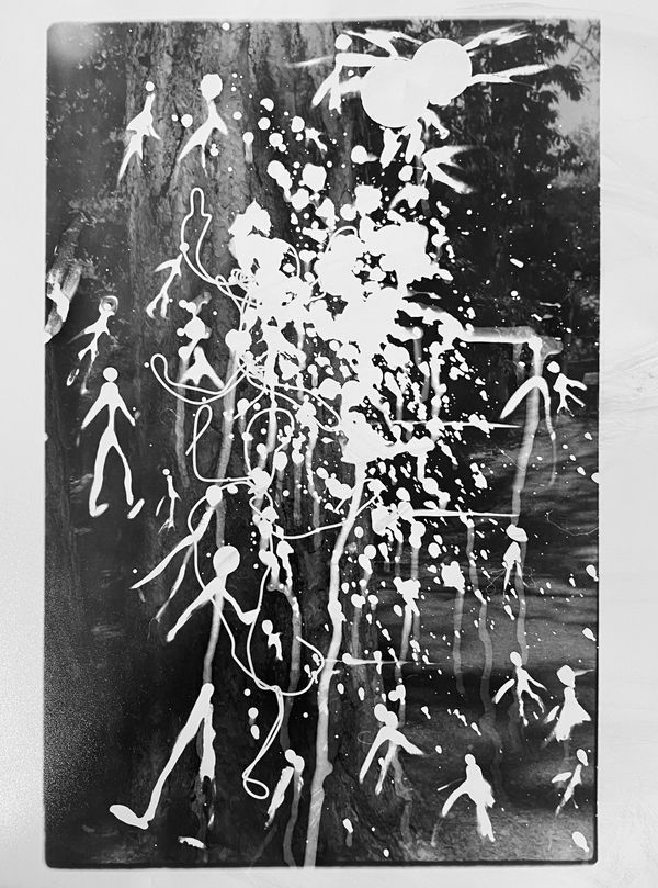 Far from home and language, I began to listen through my camera. In the quiet of my darkroom, I didn’t draw on the photographs—I let the chemicals and light do the speaking. Each reaction left its own trace, sometimes tender, sometimes violent. Shapes and figures appeared unexpectedly, like visitors emerging from the shadows. They became my companions, born from the same solitude that made me seek them.
