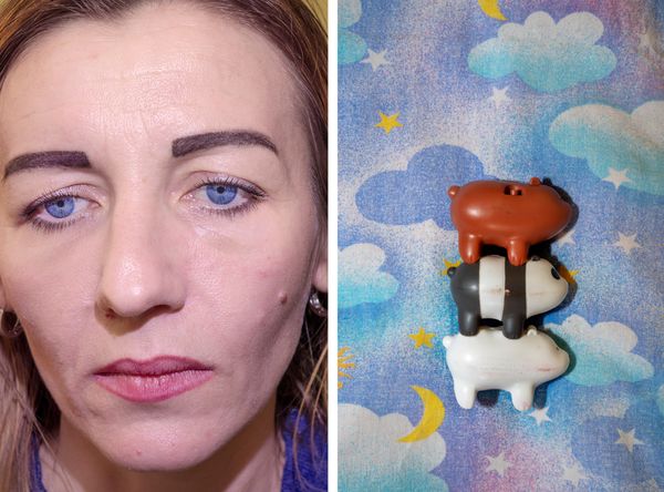 The conflict in Ukraine is a dramatic event that will leave Europe and the world changed. The war has its roots in past history and will influence the future balance of Europe and the world for decades to come. The first tangible consequences are the 4.2 million people forced to flee, in an exodus not seen since the Second World War. While men aged 18 to 60 had to stay behind to protect their country, women fled the war to neighbouring countries under the threat of bombing and fighting right on their doorstep, making a quick and final decision to save their lives and those of their loved ones. Relatives, friends, home, work, pets and things collected over a lifetime, representing a person's entire existence, were left behind with the fear of never seeing them again. Lives interrupted. In a rare access to the sheltering places, we met with many of these brave women to have their stories told and documented. We took a photo, symbolising these lives in a single portrait, and asked for one important thing they were able to take along in their hastily packed suitcases as they fled. Symbols and connections to the past and hopes for the future, while living in a harsh and painful present.