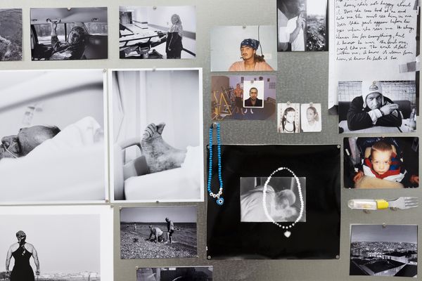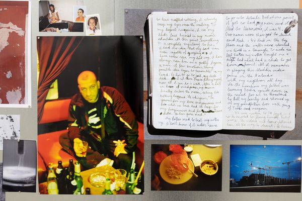 This exhibition and iteration of this project includes a metal wall filled and collaged with this archive, personal work (chromogenic prints, gelatin silver prints, inkjet prints, drugstore prints, xerox prints), pages from the journal I kept and archival family photographs/objects. It is a glimpse into my process as I work out how I see my photographs relating to each other visually or in terms of their content. It is how I begin to weave together the story I am trying to tell. I see this wall as a continuous evolution, something that will change each time it's hung in a different space, as the relationship with my father and myself continues to evolve.