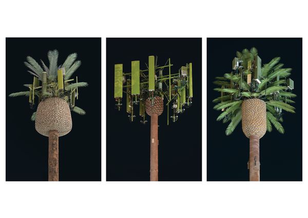 With the uprise of mobile devices, the infrastructural needs of the telecommunication industry have exploded, and since the 1980s, cell towers have started to fill the cityscapes. In 1992, Larson Camouflage, a company formerly working for the Disney theme parks, manufactured the first tree shaped disguise for a cell tower and started an industry that spread around the globe. As of now, there are more than 1000 "trees" in Southern California alone that have become manifestations of the strange relationship between humans and nature.