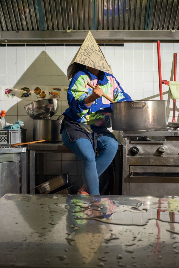 After years of drifting through different places, I landed at the school and actively started to participate in some working groups. The project began as a collaborative process of conversations with immigrants, activists, and others who passed through the school's history. It aims to navigate the school's multiple stories by photographing its unseen paths, traces, and places. On this research journey, collaborative portraits were set up to invite those who landed on the shores of Lake Geneva to draw inspiration from the myth to enhance their own stories and tell their dreams, hopes, and fears: Empowering them to share their experiences of facing the reality of being away from home and the loved ones by writing them on a paper boat hat.