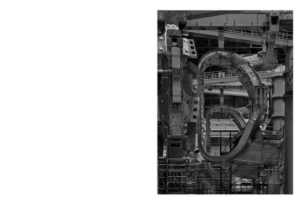 In the field, my attention is focused on the scientific, symbolic and conceptual elements of the experimentation carried out on the ITER site: ultramodern machines, technological inventions, symbols of time, allusions to monuments and solar cults, the microscopic as an analogy of the macroscopic, darkness as a space for the manifestation of light, and of course its visual declinations. But in the impossibility of reproducing the size of the construction and the temporal scale of this immense experimentation, the photographic image then proceeds according to the principle of the fragment, which, as in archaeology, can both represent a whole but, from fact of its incompleteness, also allows a broader interpretation for the one who observes it.