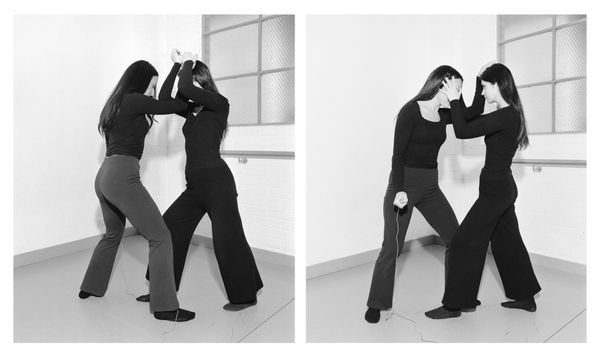 While women’s self-defence can effectively prevent violence and build confidence, it also faces criticism for being unrealistic or placing responsibility on those most at risk. Informed by manuals, training, and feminist scholarship - including Emilia Aaltonen’s critique of ‘feminine vulnerability’ and her conception of self-defence as corporeal resistance - Meg and Gabrielle stage re-enactments to explore how the body might be retrained under threat. Their rehearsals deliberately reject fixed forms, embracing contradiction. The resulting images feel simultaneously empowering, absurd, humorous, and unsettling - mirroring the tensions inherent in self-defence.