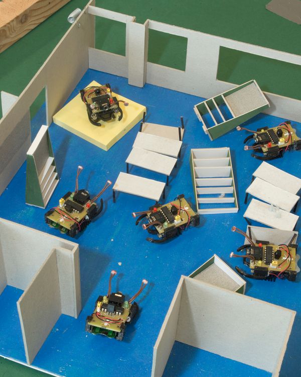 In the end, the work reflects this moment of re-construction of thoughts that we are passing through or the construction of something new. A clumsy, non-uniform and weird mix of new and obsolete elements, discarded materials, digital manipulations and robots with advanced technology.