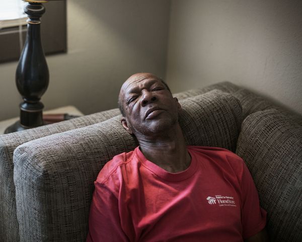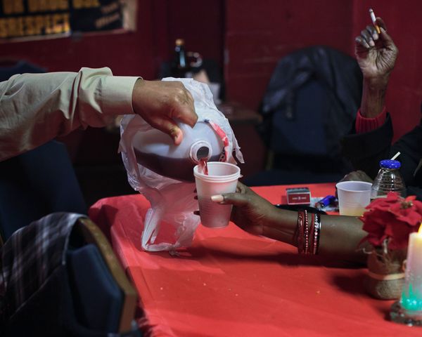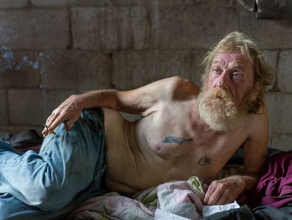 microcosm of the disregarded or resentfully tolerated. Alcohol and drug addiction are prevalent among those who live in its shadow. Prostitution, panhandling and day labor have become ways to maintain addiction. The Drake offers a means to delve deeply into a world far removed from my own but also perilously close — how my life might have looked had I not found the resources that led me to recovery. The work continuously challenges my concept of empathy and how to photograph my subjects in such a way as to “make the unseen seen.”1 I am passionate in my intent to push back against a society of increasing culturally endorsed behavior to not acknowledge the marginalized. These are not easy pictures, but my hope is that the images give space for viewers to move closer, to enter the stillness of the photographs and consider the lives of those looking back.
