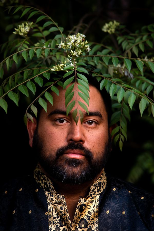 This ongoing series, 'The Landscape Does Not Sit Willingly', evokes Tim Ingold’s anthropological concept of meshworks in which “every living being is a bundle of lines” that tangles with others[1]. The bold portraits incorporate elements of the natural environment, especially ‘native’ and ‘invasive’ species as a metaphor for belonging, layering archival images and African wax print embellishments, juxtaposing past and present, and creating something new from the entanglement.