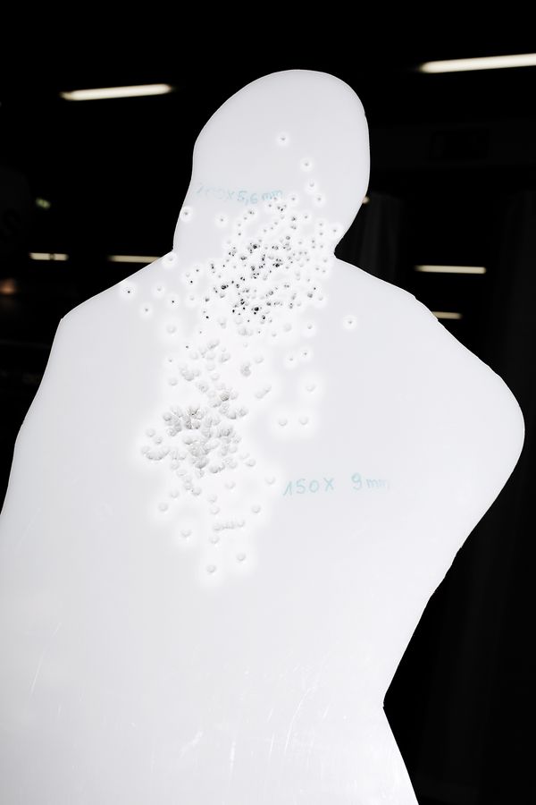 In 'THE STATE I AM IN' I approach the complex topic 'inner security' both on a personal and on a sociopolitical level. It is a conceptual body of work that encompasses elements of documentary, portrait and still photography. I aim to illuminate aspects of the field such as surveillance, fear of 'the other/ed', aspiration, an inner shelter, state authority, isolation, containment, demarcation and the diametrically opposed relationship between freedom and security. My motivation during the process of working on the series has been to discover how society behaves and changes in face of an asserted, diffuse threat. I'm contrasting these visual examinations with abstractions that adumbrate the feeling of inner security. I have visited places which are connected to the subject matter, such as the Security Academy Berlin, the law enforcement fair 'Enforce Tac'. I also visited the erstwhile Stasi Prison where I portrayed former inmates and fragmentarily photographed the surface of the rubber cell. I arranged the portraits according to the way they are dealing with their grueling past. By leaving out visual information I underline the arbitrariness with which the concept of an enemy is being designed.