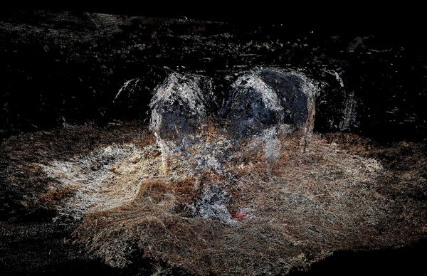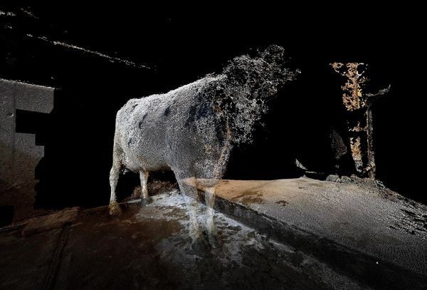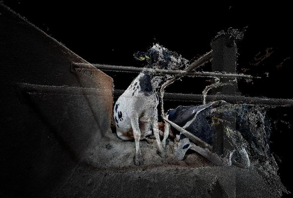 Unleash Your Herd’s Potential addresses these issues by rendering cows and their environment using photogrammetry, a photography-based 3D-scanning technique originally developed for cartography and surveying. Employing this method enables the representation of the subject as a cloud of information - the creation of an exploded view - while lending the images a painterly appearance. This results in a work characterised by a 21st-century bucolic imagery in which the datafied existence of animals belongs to an increasingly technological landscape perceived through digital means.