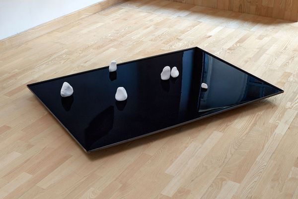 Besides, the work comprises a collection of salt licks, providing a counterpoint to the images by bringing in materiality and the agency of the cows. Manufactured as cubiform blocks, and given to the cows to gain essential nutrition, these mineral licks were shaped into anomalous, organic forms by the animals. Thus, these artefacts can be regarded as symbols of the rebellion against our endeavour to turn living beings into parameterised commodities.