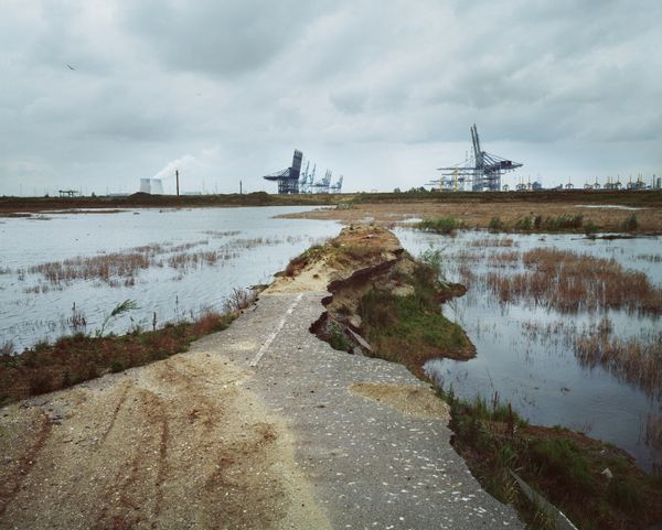 a current topic with global relevance. The series investigates, over a period of more than ten years, the evolution of the Belgian Village “Doel”. The area is under pressure by vast harbor expansions and related nature compensation plans imposed by the European Union. Large zones of former living and agricultural land are being transformed into industrial areas on one hand and “new nature” areas on the other hand to balance the expanding industrial zones and create through estuarine nature a safety buffer alongside the river Scheldt to cope with- and protect the land for rising sea levels.