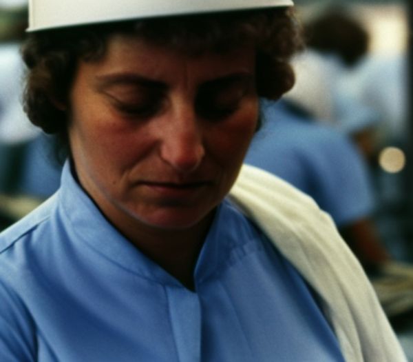 While Asleep, While Awake, is the second chapter of the project La Ripetizione (Repetition), which started in 2020. The project incorporates images and texts from books, manuals, and documentary films, which I collected and found to create mixed media compositions and to retrace moments of working women's life and education, combining elements of fiction with historical and public documents on women’s labor until the early 1980s. I use archives and existing materials with the political goal of highlighting hidden aspects of cultural history and its patterns, with the intent to expose possible ways to reread history, social patterns, and routines, as well as investigate how memory works and the way it can assemble unconscious inventions and fictions. With the same approach, I’m now also experimenting with the bias and limits of open-source AI text-to-image applications. All these documents, digital and physical, allow me to create a larger body of work, now included and an integral part of While Asleep, While Awake. Concentrating my research on the relationship between action and rest, work, and sleep, I am experimenting with audiovisual fragments from several international archives, designing a series of video portraits that dilate the time of a working shift and the gaze of women at work. In parallel, I'm creating an installation piece with images generated with open-source AI text-to-image applications. Intrigued by the possibility of assembling images of a specific condition or moment of the past, these applications visualize fictional memories and documents. In particular, I'm composing images of working women in factories while trying to challenge the machine bias and reflecting on memory with the usage of digital collages and the relationship between texts and images in our contemporary tools and languages.